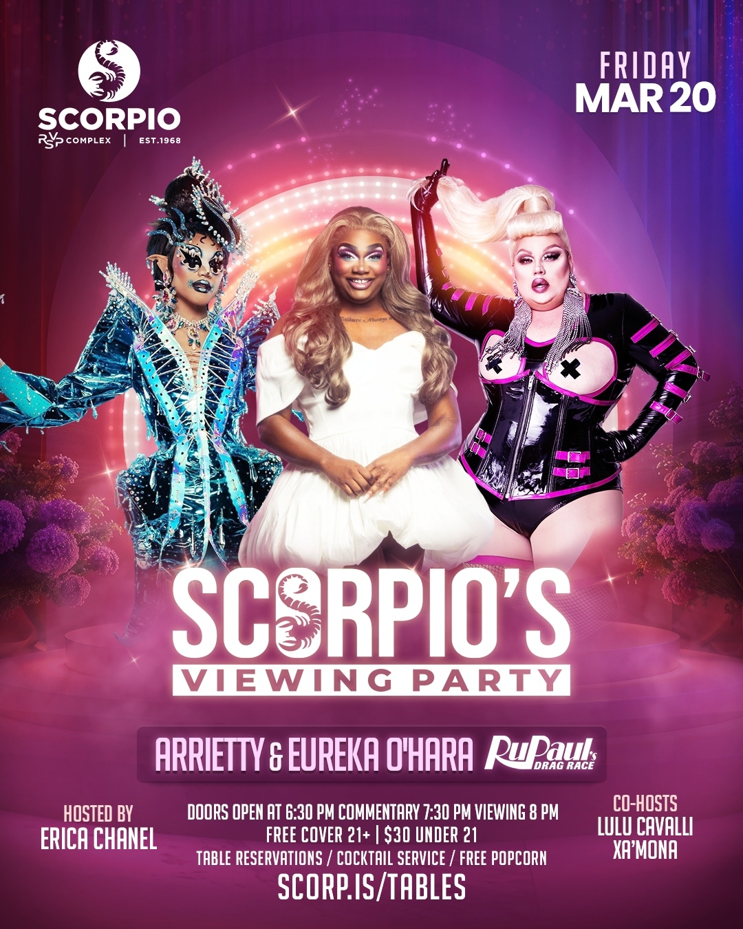 At the re-imagined Scorpio, we’re bringing you top-tier entertainment with dazzling drag shows, featuring some of the most talented queens in the industry. Our lineup includes headliners from prestigious competitions and beloved local favorites. In addition to our fabulous drag shows, we’re excited to host international recording artists who will take the stage and fill the venue with electrifying live music. Our DJ lineup is just as impressive, featuring world-renowned DJs who will keep the energy high and the dance floor packed. Join us for nights filled with music, dance, and pure entertainment!