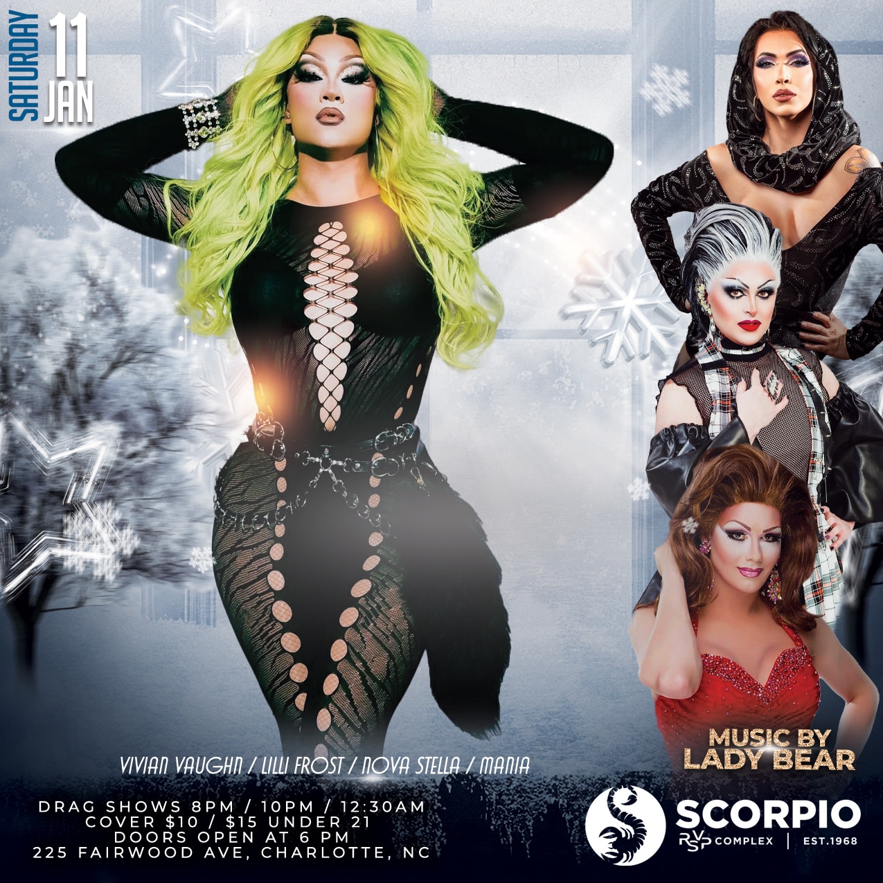 Get ready to sashay your way to Scorpio’s because tonight’s lineup is too good to miss. Let’s make this Saturday night unforgettable! 🔥💃 #WinterSlay #DragMagic #ScorpiosSaturdayNight
